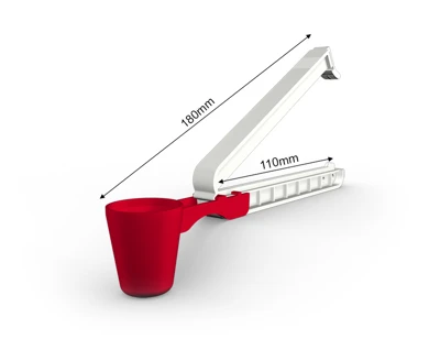 WeLoc Scoop is part of our range where, in addition to a clever WeLoc closure, a measuring scoop (or spoon) is also included. The clip with scoop attached is available in various length/size combinations to suit most needs. Our smaller scoops are perfect for packs of coffee, protein powder, bags of dry goods in the kitchen and laundry detergents. The larger versions can help you measure out the right amount of different pet foods such as dog and cat biscuits, while also ensuring your packages are properly sealed to preserve flavour/aroma and extend shelf life.