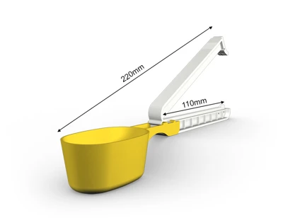 WeLoc Scoop is part of our range where, in addition to a clever WeLoc closure, a measuring scoop (or spoon) is also included. The clip with scoop attached is available in various length/size combinations to suit most needs. Our smaller scoops are perfect for packs of coffee, protein powder, bags of dry goods in the kitchen and laundry detergents. The larger versions can help you measure out the right amount of different pet foods such as dog and cat biscuits, while also ensuring your packages are properly sealed to preserve flavour/aroma and extend shelf life.