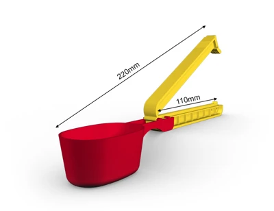 WeLoc Scoop is part of our range where, in addition to a clever WeLoc closure, a measuring scoop (or spoon) is also included. The clip with scoop attached is available in various length/size combinations to suit most needs. Our smaller scoops are perfect for packs of coffee, protein powder, bags of dry goods in the kitchen and laundry detergents. The larger versions can help you measure out the right amount of different pet foods such as dog and cat biscuits, while also ensuring your packages are properly sealed to preserve flavour/aroma and extend shelf life.