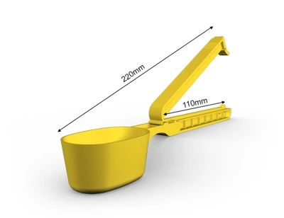 WeLoc Scoop is part of our range where, in addition to a clever WeLoc closure, a measuring scoop (or spoon) is also included. The clip with scoop attached is available in various length/size combinations to suit most needs. Our smaller scoops are perfect for packs of coffee, protein powder, bags of dry goods in the kitchen and laundry detergents. The larger versions can help you measure out the right amount of different pet foods such as dog and cat biscuits, while also ensuring your packages are properly sealed to preserve flavour/aroma and extend shelf life.