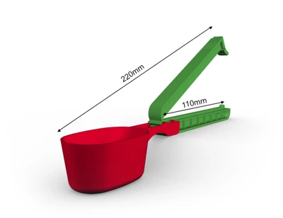 WeLoc Scoop is part of our range where, in addition to a clever WeLoc closure, a measuring scoop (or spoon) is also included. The clip with scoop attached is available in various length/size combinations to suit most needs. Our smaller scoops are perfect for packs of coffee, protein powder, bags of dry goods in the kitchen and laundry detergents. The larger versions can help you measure out the right amount of different pet foods such as dog and cat biscuits, while also ensuring your packages are properly sealed to preserve flavour/aroma and extend shelf life.