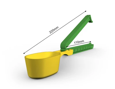 WeLoc Scoop is part of our range where, in addition to a clever WeLoc closure, a measuring scoop (or spoon) is also included. The clip with scoop attached is available in various length/size combinations to suit most needs. Our smaller scoops are perfect for packs of coffee, protein powder, bags of dry goods in the kitchen and laundry detergents. The larger versions can help you measure out the right amount of different pet foods such as dog and cat biscuits, while also ensuring your packages are properly sealed to preserve flavour/aroma and extend shelf life.