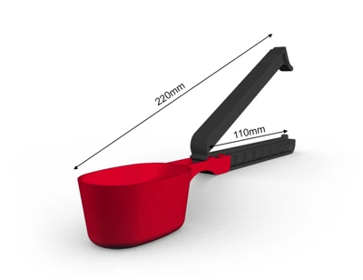 WeLoc Scoop is part of our range where, in addition to a clever WeLoc closure, a measuring scoop (or spoon) is also included. The clip with scoop attached is available in various length/size combinations to suit most needs. Our smaller scoops are perfect for packs of coffee, protein powder, bags of dry goods in the kitchen and laundry detergents. The larger versions can help you measure out the right amount of different pet foods such as dog and cat biscuits, while also ensuring your packages are properly sealed to preserve flavour/aroma and extend shelf life.