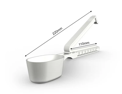 WeLoc Scoop is part of our range where, in addition to a clever WeLoc closure, a measuring scoop (or spoon) is also included. The clip with scoop attached is available in various length/size combinations to suit most needs. Our smaller scoops are perfect for packs of coffee, protein powder, bags of dry goods in the kitchen and laundry detergents. The larger versions can help you measure out the right amount of different pet foods such as dog and cat biscuits, while also ensuring your packages are properly sealed to preserve flavour/aroma and extend shelf life.