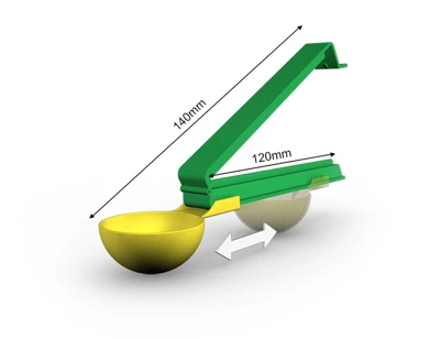 WeLoc Scoop is part of our range where, in addition to a clever WeLoc closure, a measuring scoop (or spoon) is also included. The clip with scoop attached is available in various length/size combinations to suit most needs. Our smaller scoops are perfect for packs of coffee, protein powder, bags of dry goods in the kitchen and laundry detergents. The larger versions can help you measure out the right amount of different pet foods such as dog and cat biscuits, while also ensuring your packages are properly sealed to preserve flavour/aroma and extend shelf life.