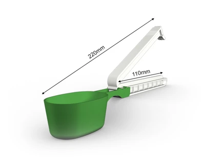 Våra mindre skopor passar till exempel utmärkt för kaffe, proteinpulver, torrvaror i hushållet och tvättmedelsförpackningen. De större varianterna kan hjälpa dig att dosera rätt mängd av olika djurfoder till för hund- och kattmat samtidigt som dina förpackningar försluts ordentligt för att bevara smak/lukt och förlänga hållbarheten.